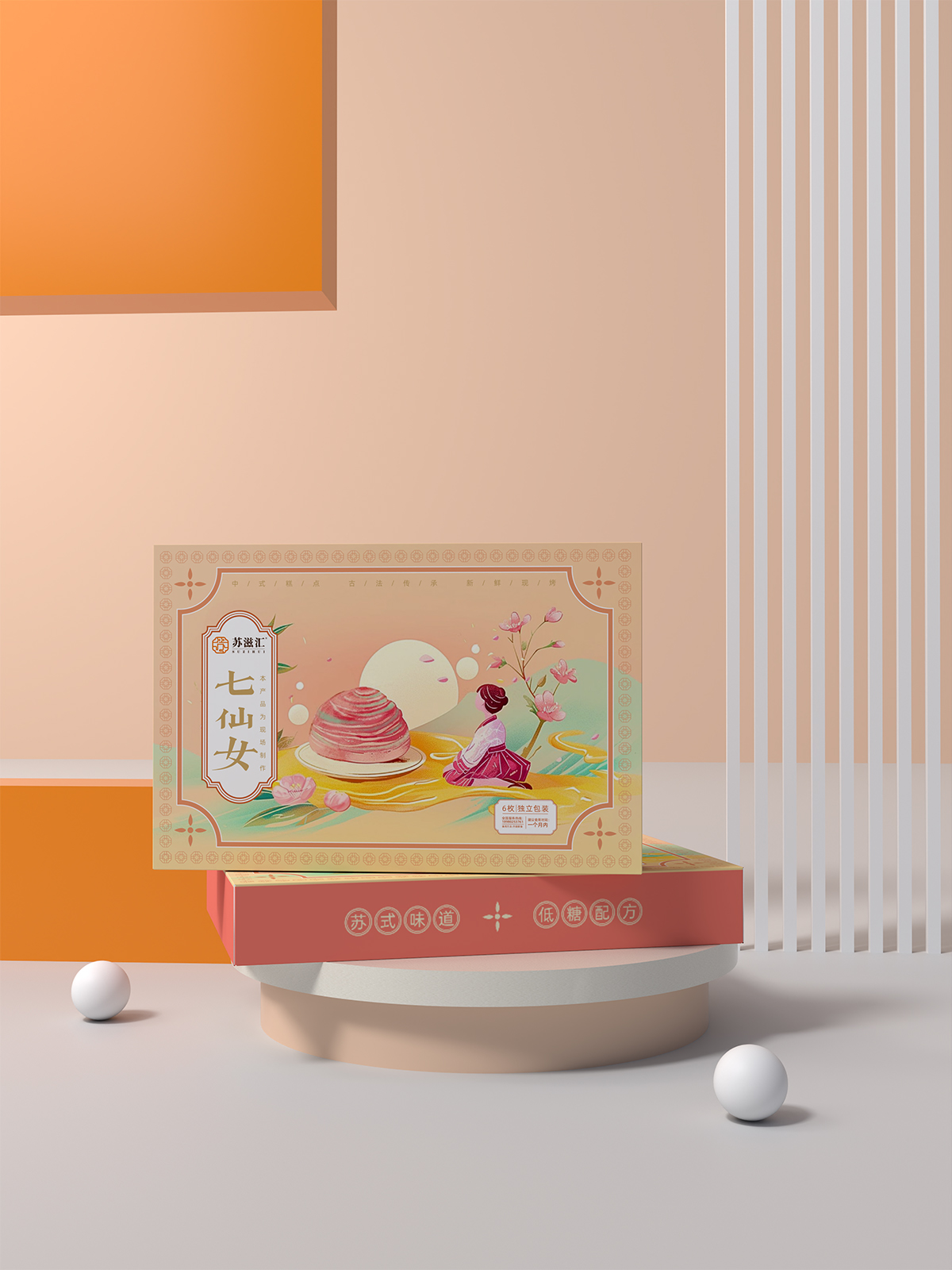 極地視覺為蘇滋味打造四款包裝系列分別為七仙女糕點(diǎn)包裝設(shè)計系列、七尋茉莉糕點(diǎn)包裝設(shè)計系列、荷塘月色糕點(diǎn)包裝設(shè)計系列、桃酥系列包裝設(shè)計等。
