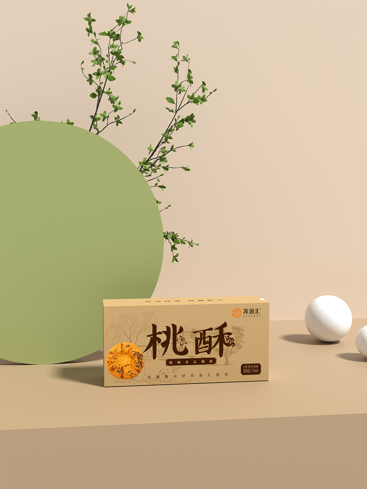 桃酥包裝設(shè)計系列,桃酥禮盒升級的關(guān)鍵在于.將品牌和產(chǎn)品內(nèi)涵清晰可視化,讓桃酥成為詹記精神視覺文化符號。以蘇式文化深化品牌內(nèi)涵,是本項目的策略關(guān)鍵。設(shè)計師重新梳理蘇滋味品牌文化和桃酥產(chǎn)品文化,借鑒蘇式工藝,在桃酥造型中進(jìn)行刻畫,象征著桃酥獨(dú)到匠香的背后承載了詹記一路走來的風(fēng)風(fēng)雨雨和堅守的蘇商精神。以干、酥、脆而聞名,一口酥到掉渣,濃郁麥香混合著芝麻香,讓你感受到入口即化的美味。