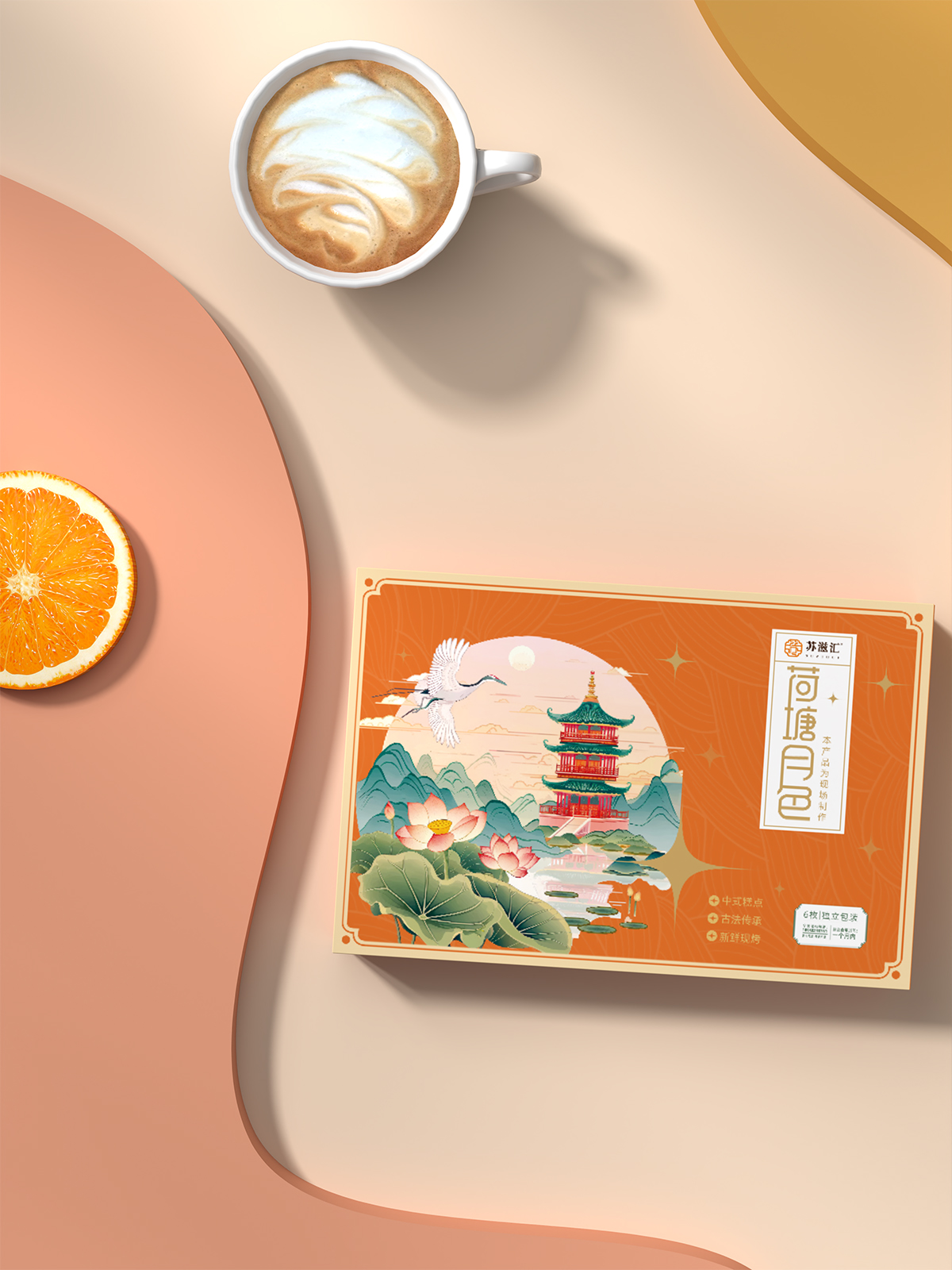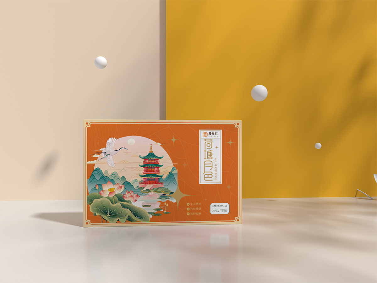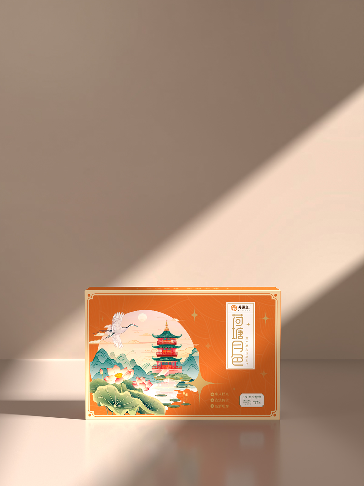 荷塘月色荷花酥包裝系列,傳統(tǒng)技藝 層層起酥 手工制作 回歸本真 酥皮融入健康果蔬粉調(diào)制 0天添加人工色素 遵守自然堅守原本 冰粉花色 清甜酥脆口感豐富。主體圍繞荷花 仙鶴以及蘇州園林景色進(jìn)行創(chuàng)造。