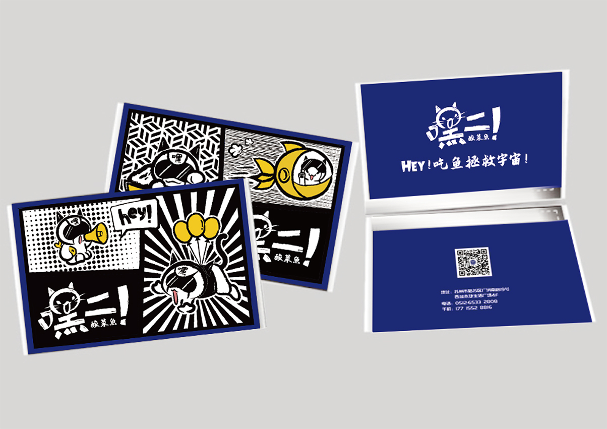 嘿二酸菜魚視覺采用黑色貓咪形象,可愛又有能量;店內(nèi)主題色調(diào)統(tǒng)一,富有吸引力與感染力,使得消費(fèi)者印象深刻。