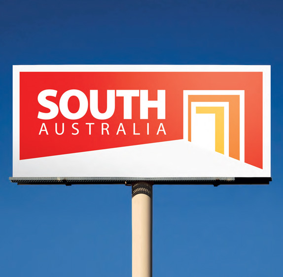 新Logo由澳大利亞地圖的形狀衍生而成,紅色澳洲地圖圖標上的敞開調黃色門的位置正好展現了南澳州是整個國家的中心門口的位置。這是一個多形態的標識,它可以應用于各種的形式,由不同圖案的窗口變成了另一圖形的門。