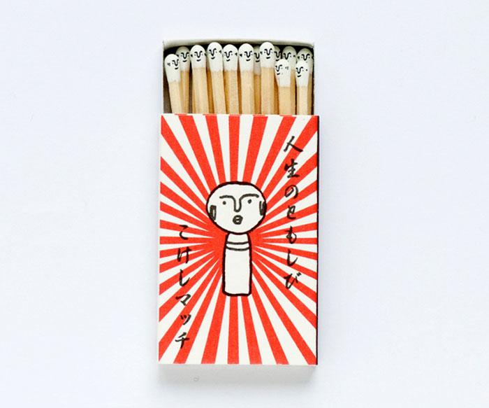 小木偶結合創意設計也會為老產品帶來新的生命力,這是Kumi Hirasaka 在1994年借用日本的傳統木娃娃造型設計的火柴包裝設計部分,后來將木偶的制作擴展到了小雞,小豬,小貓和其他動物類型上