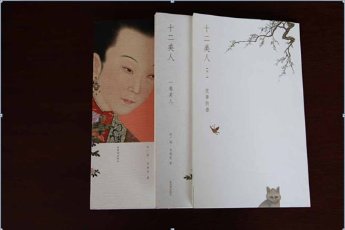 《十二美人》(紫禁城出版社) 風格靜謐而舒展,美人嫻靜的形貌與品性得到充分表現;同一頁面上形成動靜結合的設計感,而留白成為設計的中心;封面與封套有機地融為一體,相同的元素在多處形成呼應;兩函而一匣的安排既闡釋古典的主題,又代表了前衛的設計潮流;此書可稱為書籍設計的杰作