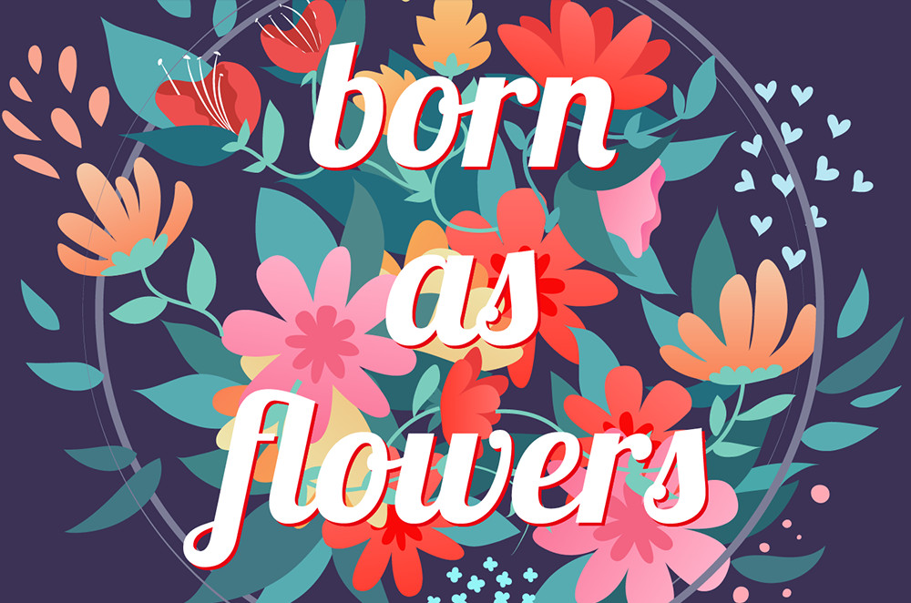 先用文字工具寫出“born as flowers”的文字,排列成為三行,并居中顯示。字體我運用的Lobster,連體字形更能很好的和藤蔓的外形關系結合起來。