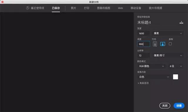 在Photoshop中創(chuàng)建一個1600 x 900像素白色背景的新文檔。