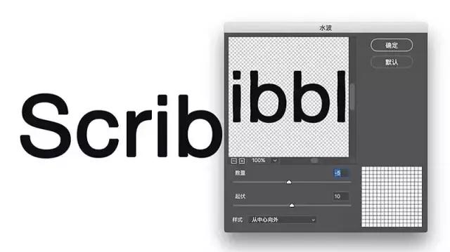 選擇濾鏡>扭曲>水波。輸入數(shù)量值為-5,起伏值為10,樣式為從中心向外。