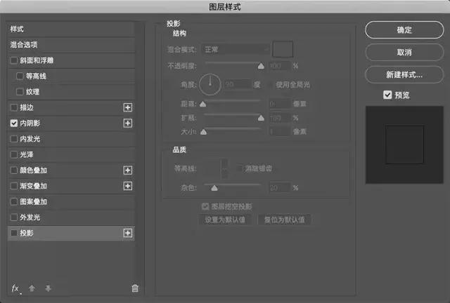 將智能對象圖層的填充不透明度設(shè)置為0,添加一個內(nèi)陰影樣式設(shè)置如下。還要創(chuàng)建一個投影,只有1px的大小。這兩個陰影一起形成具有粗糙邊緣的筆畫/輪廓效果。