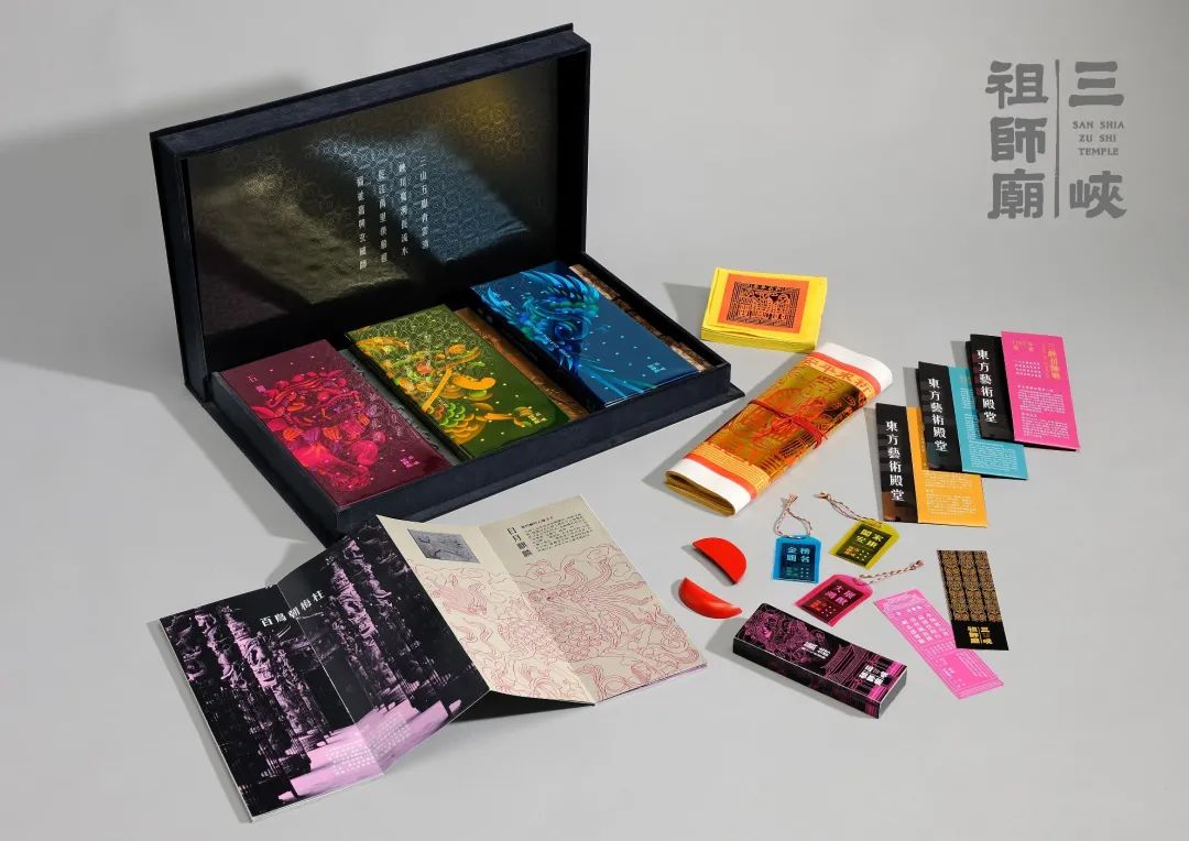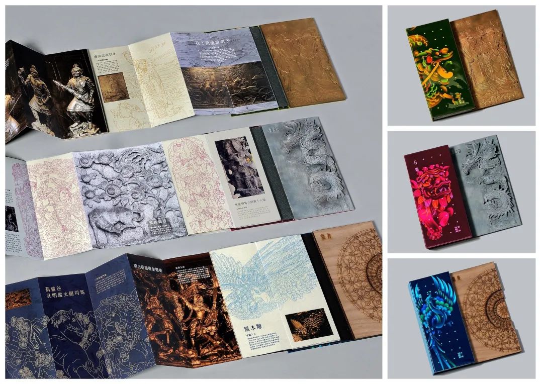 臺灣三峽祖師廟以雕飾藝術(shù)聞名于世, 享有東方藝術(shù)殿堂雅稱。設(shè)計概念將石雕、木雕、銅雕傳統(tǒng)工藝圖騰進(jìn)行轉(zhuǎn)化設(shè)計, 結(jié)合裝幀設(shè)計與制作工法,重新詮釋傳統(tǒng)藝術(shù)之美。