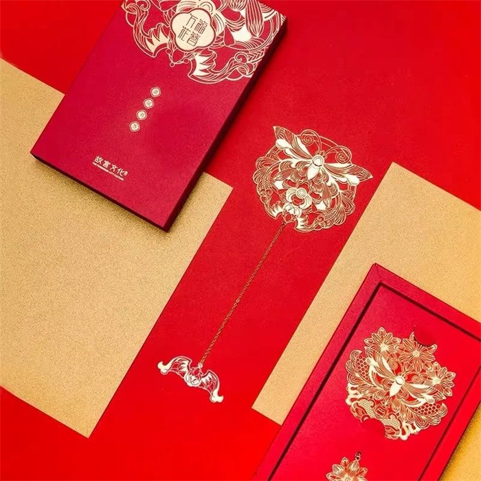 這款書簽外盒采用經典中國紅包裝