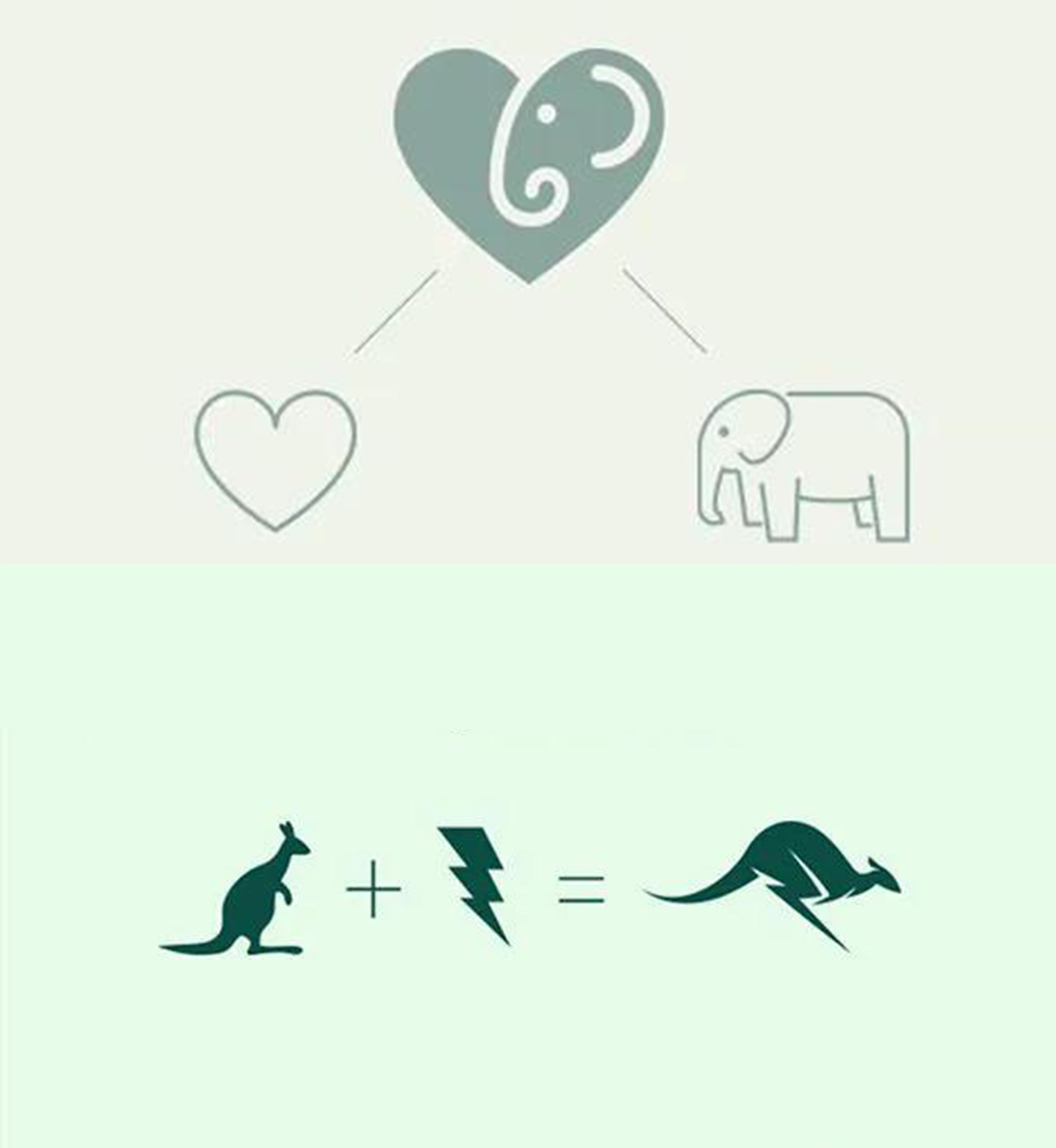三者元素各取一部分組成一個logo,也可以是兩者元素各取一部分組成整體。