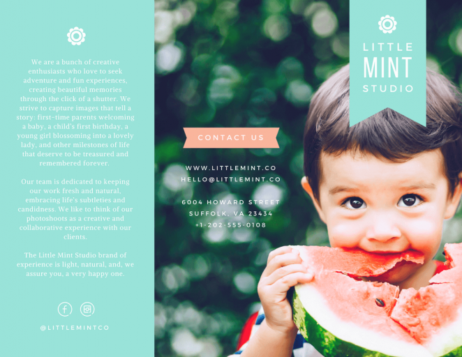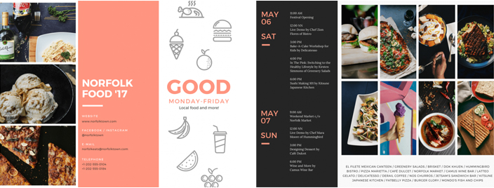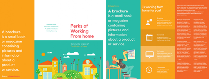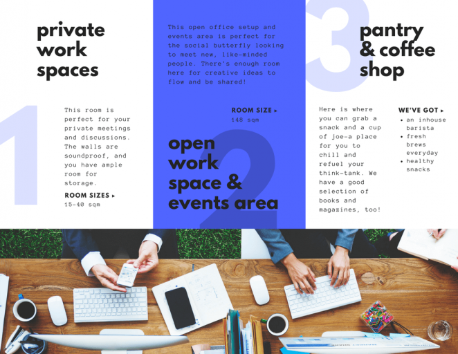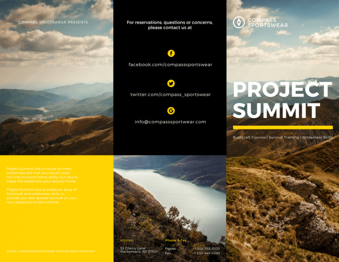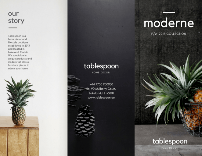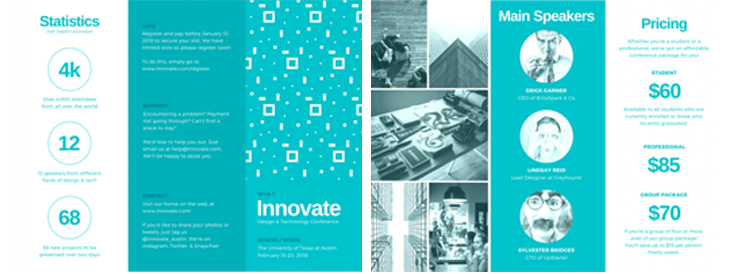 不想讓你的三折頁受到忽視?設計時使用上明亮的色彩襯托你的展品是個不錯的方法。如果是用你自己的品牌色進行配色,就使用最明亮的那個配色吧。