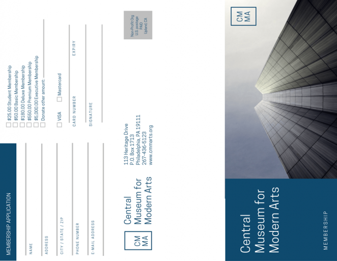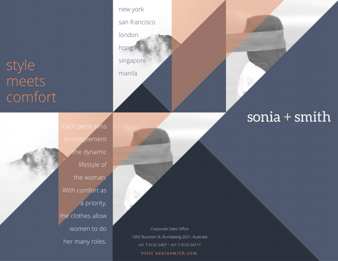 我經常看到很多三折頁的設計被限制于已經設定好的折頁內。忘記它們,然后用一個色彩與圖形的組合,創造一個橫跨三折頁的迷人設計。