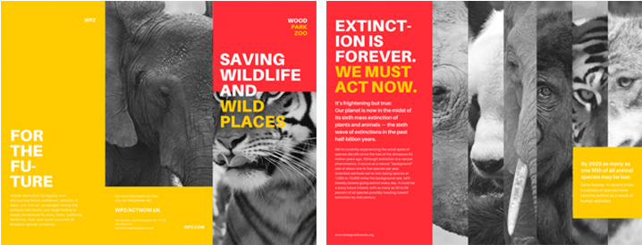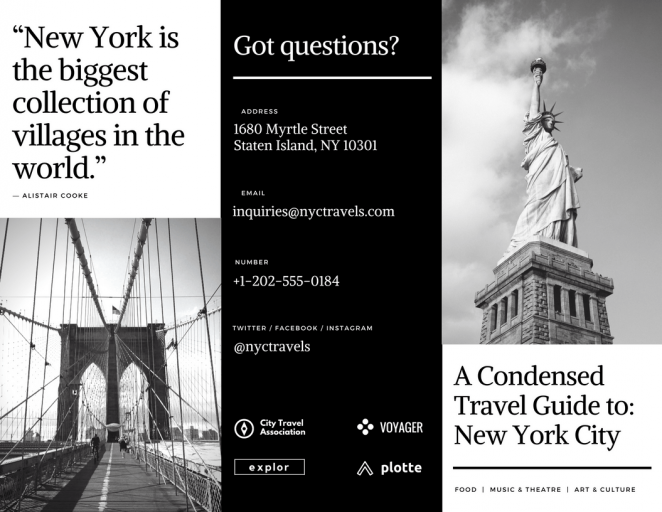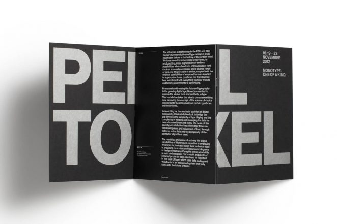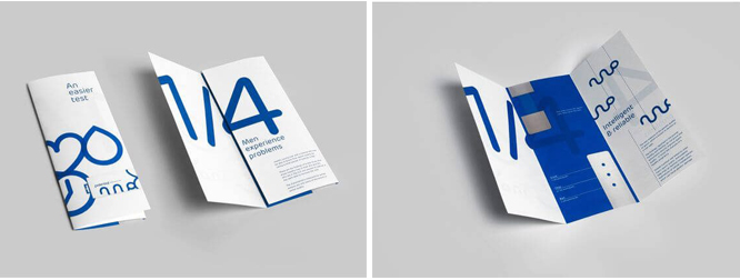 你的三折頁并不一定都需要小或者整齊的文字,通過使用超大的設計元素形成對比,比如上圖中的大數字,與常規尺寸的文字形成很大發差。