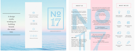 設計師顯然在思考如何用單頁去影響整體,如何確保整體折頁看起來美觀。同樣,你也要認證考慮當你的版面被翻轉時,你的三折頁看起來是不是也依舊美觀。確保你的設計元素在打開和折疊起來時同樣美觀。