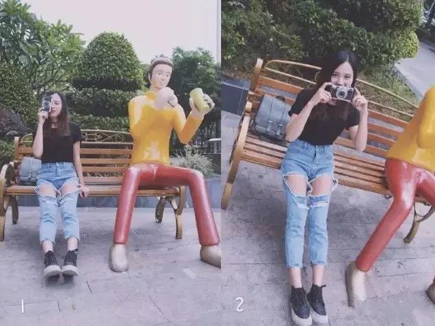 每個妹子都希望有一雙大長腿,和高挑的身材,即使沒這條件,在拍照的時候也可以創造條件不是?