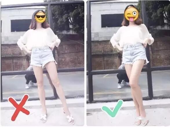 拍照角度很重要,但拍照姿勢也同樣重要。下面教大家幾種簡單易學的拍大長腿姿勢:
