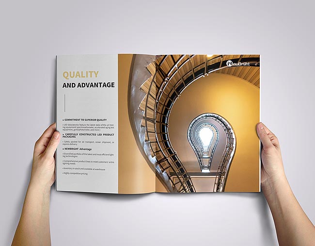 照明產品宣傳冊在進入介紹品牌鏈上的產品前,對企業(yè)概況的描述是必不可少的,畢竟并不是每一位讀者都是你的老客戶,對你公司的充分了解。對照明公司的簡介文案刻畫上也要突出公司實力為主,并且適當的融入企業(yè)文化,增進照明銷售代理商對企業(yè)的信心。宣傳在進入照明產品設計排版的時候,需要簡約處理,清晰的識別產品的參數型號以及各項指標,方便快速的索引目錄是成功的關鍵。