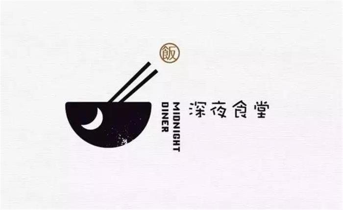 深夜食堂LOGO設(shè)計標志是一個碗筷的造型,上面加上了篆書的飯字的品類屬性,碗上加入月牙的造型,顯得LOGO比較有意境。