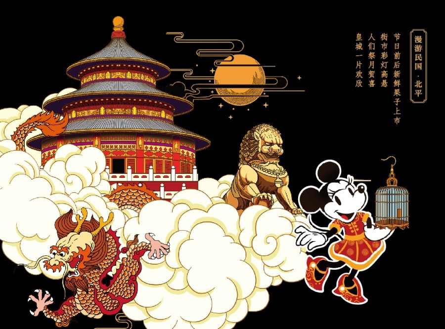 在“Mickey漫游民國(guó)”的主題下,RLON用畫(huà)筆,將北京的皇城味、上海灘紙醉金迷的都市味兒、廣府美食獨(dú)有的思鄉(xiāng)味兒和昆明云貴高原物產(chǎn)的風(fēng)味,一樣樣畫(huà)下來(lái),美輪美奐且“最有范”的迪士尼民國(guó)范月餅包裝設(shè)計(jì)完美呈現(xiàn)。