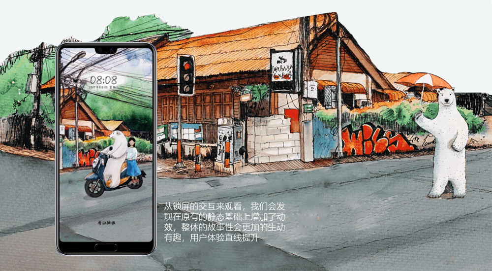 除了多壁紙鎖屏,動態類鎖屏也是當下的風尚,靜態的壁紙通過代碼實現移動、漸隱、縮放、旋轉,制作出炫酷的動態效果。華為主題開發工具結合藝術的審美和創意,為其賦予了全新的生命。