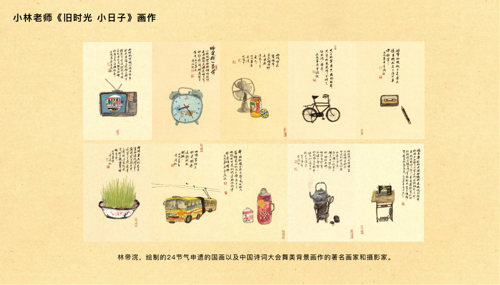 他們特意挑選5張畫作做成長軸的形式,通過動效和聲效的手法還原舊物品, 將記憶中的小雞鬧鐘、風扇、電視機、自行車、磁帶等形象展現在用戶眼前。