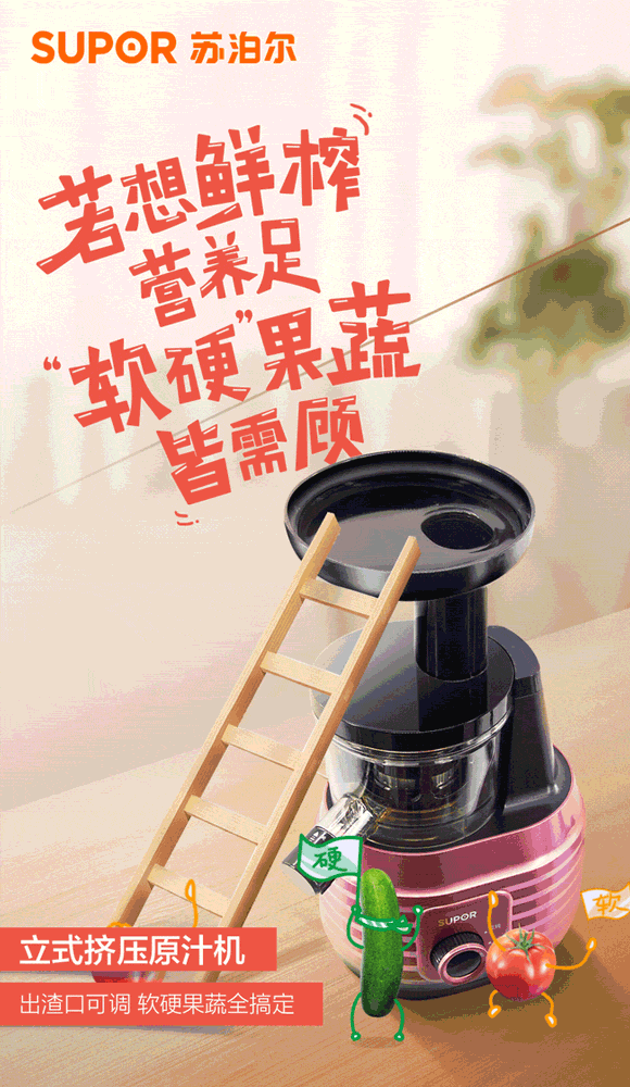 多吃果蔬對身體有益。也許購買一臺榨汁機,DIY美味又營養(yǎng)的果蔬汁是最好的選擇。蘇泊爾用一套萌萌的水果人GIF,消除人們對果蔬機在營養(yǎng)保留、口感以及材料的安全性上的擔(dān)憂,遇見最好的自己,從鮮活果蔬汁開始。