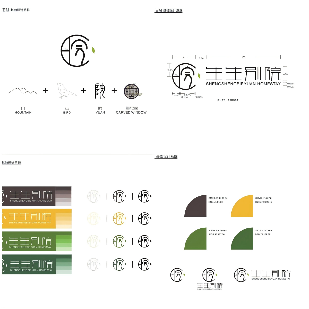 LOGO 設計摒棄繁復裝飾,以抽象化的 “山形輪廓” 與 “飛鳥剪影” 構成視覺焦點,山的穩重與鳥的靈動形成動態平衡,隱喻 “在自然中自由棲息” 的品牌主張。標準字體選用定制化無襯線字體,筆畫細節融入手寫筆觸,既保留現代感,又賦予溫度。色彩體系以 “晨霧灰”“苔原綠”“月光銀” 為主色調,搭配 “琥珀金” 作為點綴色,通過克制而高級的配色方案,營造靜謐、雅致的氛圍。