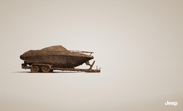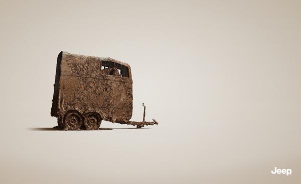初看來(lái)不知所云,這是Jeep的廣告?Jeep還產(chǎn)拖車了?還是這樣一個(gè)不修邊幅渾身泥漿的模樣?