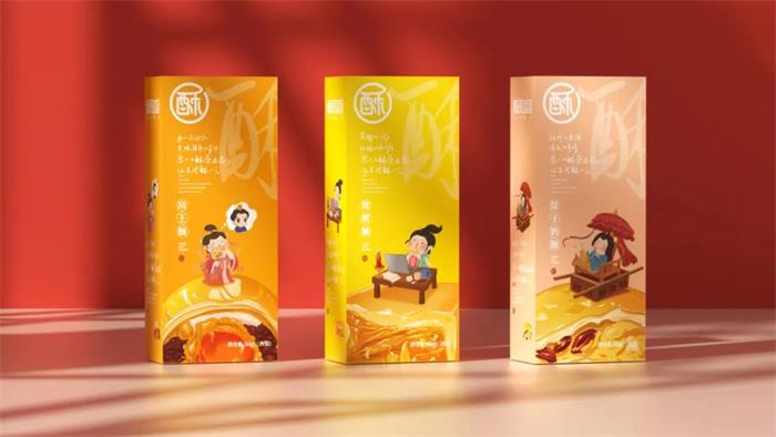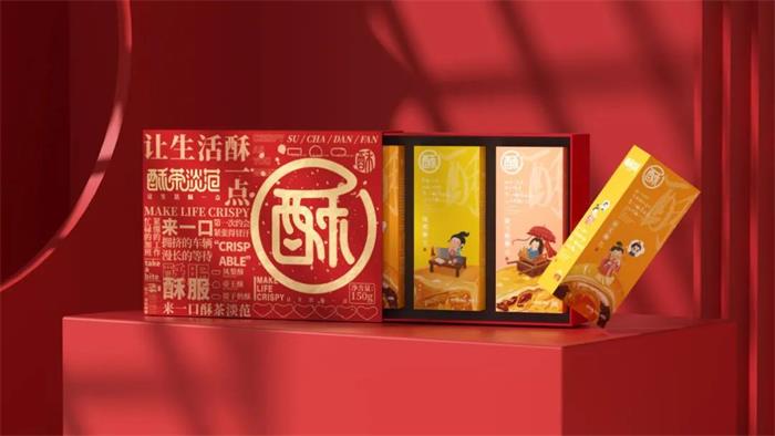 蘇州食品包裝設(shè)計(jì)禮盒分為紅、藍(lán)兩款主色調(diào)包裝,圖形化的“酥”字占據(jù)了大部分封面,柔軟的筆觸與裸粉色調(diào),形成品牌的視覺符號。左側(cè)則是滿版的產(chǎn)品賣點(diǎn)排版,重點(diǎn)突出“酥服”等俏皮文案,進(jìn)一步強(qiáng)化品牌調(diào)性,以直戳消費(fèi)者痛點(diǎn)的文字表達(dá),激發(fā)其購買欲。抽拉式禮盒便捷易開,加之透明內(nèi)封的裝飾保護(hù),賦予包裝更多的收藏和送禮價值。內(nèi)盒獨(dú)立包裝將畫面定格在古代,古裝小人IP正在認(rèn)真工作、,乘轎外出或品嘗美食,并且將手繪插圖的蛋黃酥為“背景板”,寓意沉浸在美食的世界~