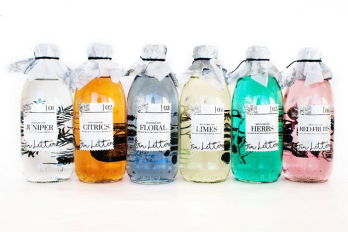 包裝的色彩會對人的生理、心理產生刺激作用。在食品包裝上,使用色彩鮮麗、色調明快的粉紅、橙黃、橘紅等顏色可以強調出食品的香、甜、柔軟等嗅覺、味覺和口感。如圖4-12 所示,百分之百無添加的純天然的果汁,對不同口味的產晶運用不同色彩的包裝。巧克力、麥片等食品,多用金色、紅色、咖啡色等暖色,給人以新鮮美味、營養豐富的感覺;茶葉包裝用綠色,給人清新、健康的感覺;冷飲食品的包裝用藍、白色,給人冰雪、清涼的感覺;煙酒類食品常用典雅古樸的色調,給人味美、醇正的感覺。正是這些商品包裝的色彩符合了消費者的生理、心理特點,才使消費者迅速地在同類商品中首選此商品,加快了該企業商品的銷售。個性化的產品造型及溫暖的顏色結合,更加引起人們的好奇心。簡單、透明的玻璃瓶包裝,則更加凸顯產品無添加、無污染的內涵。
