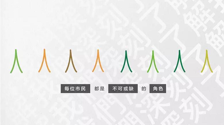 從臺中地標建筑的抽象造型,隱喻漢字“以人為本”的設計理念,強調“3*3*3設計共創策略”的第一層3:人的共創。從市府局處的連結,到臺灣產學研的串聯,進一步向國際伙伴城市(Partner City)延伸。