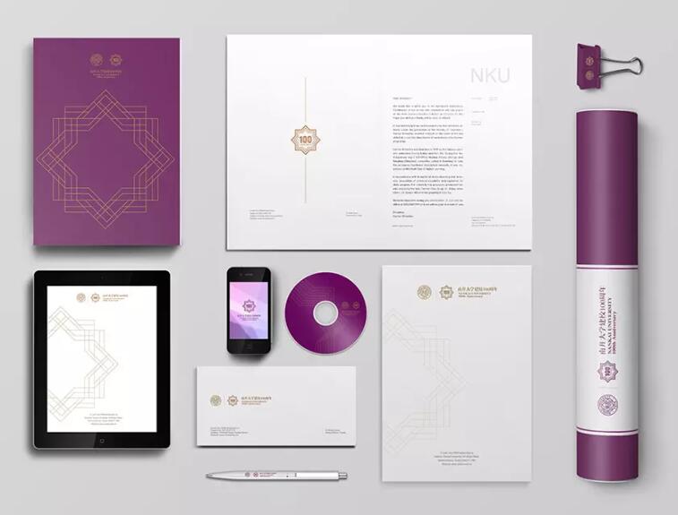 整個標志將校徽核心元素與百年校慶主題充分融合,力求簡潔莊重、寓意明確,希望給南開人以自然而生的親切感。在組合方式上,它既可以與校慶標準字單獨組合使用,又可以與現行校徽并置使用,以不同的組合方式滿足校慶期間不同場景、宣傳品和辦公用品,以及各種豐富多彩的校慶紀念品的應用設計需要。