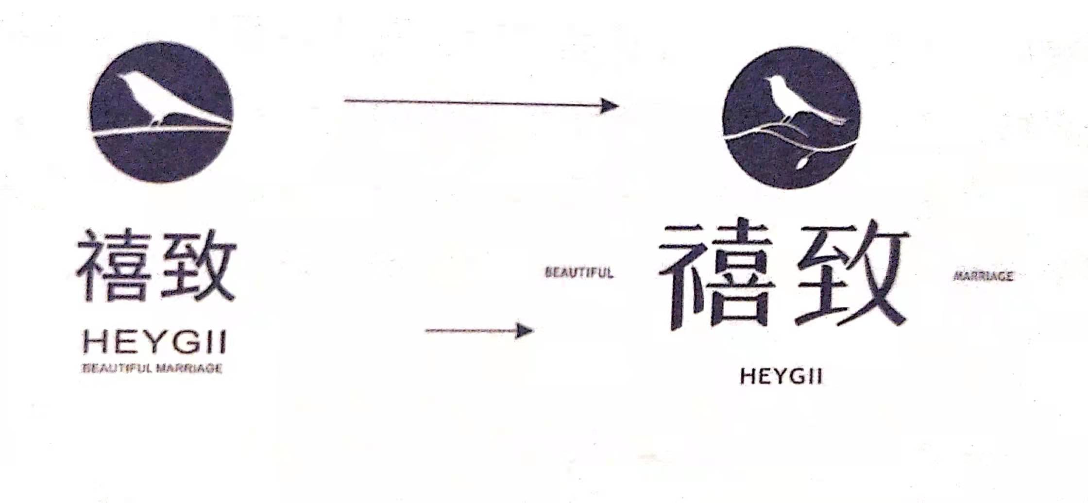 下圖是一個(gè)婚慶品牌的圖形和字體,左邊的 Logo 使用簡單的喜鵲圖形和未經(jīng)雕琢的字體;石邊的 Logo 將喜鵲的動(dòng)作和造型進(jìn)行了調(diào)整,同時(shí)對簡單的黑體字進(jìn)行了筆畫和細(xì)節(jié)調(diào)整,使整個(gè)Logo更加符合婚慶品牌的氣質(zhì)。